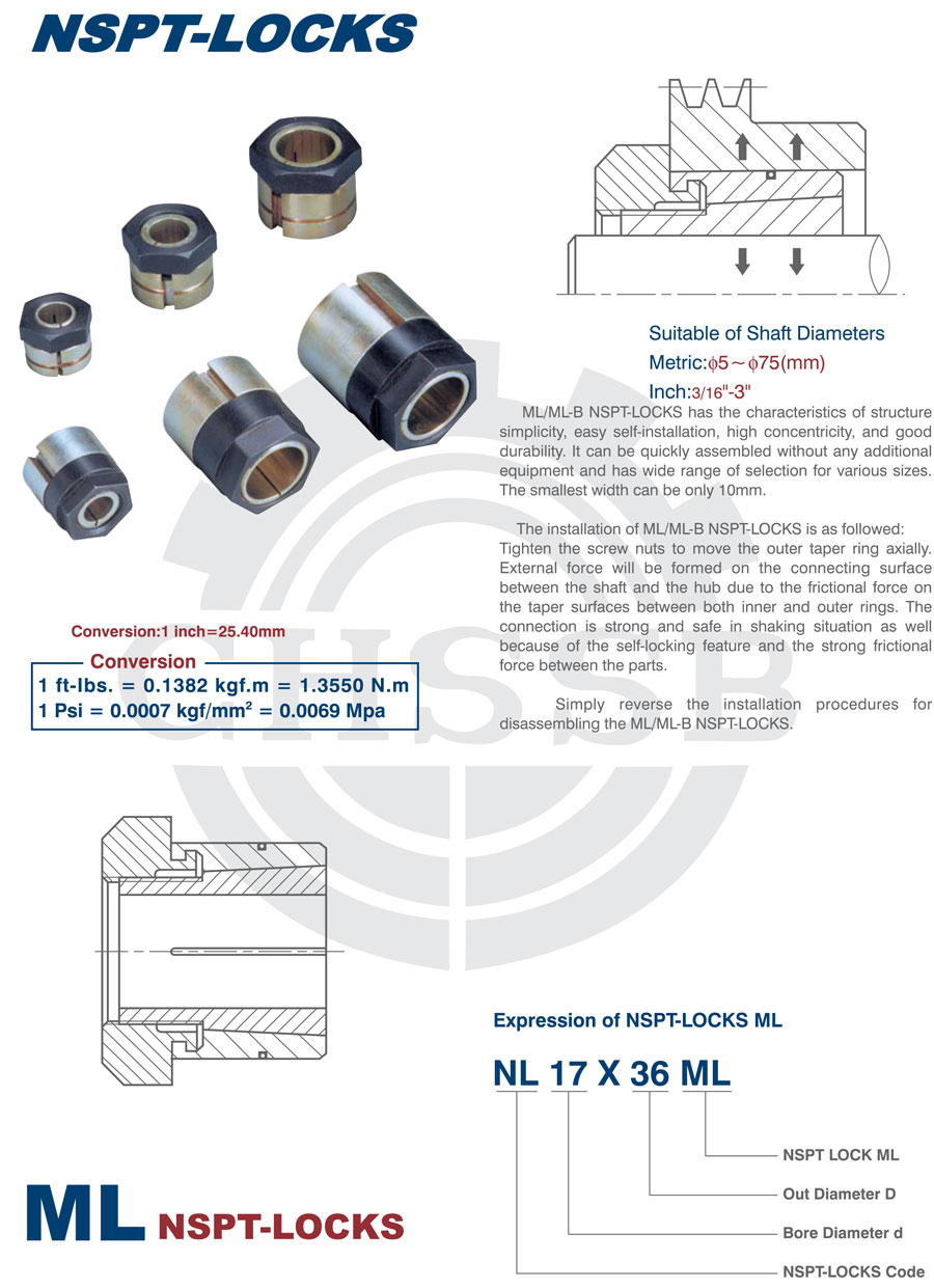 ML /ML-B NSPT-LOCKS has the characteristics of structure simplicity, easy self-installation, high concentricity,