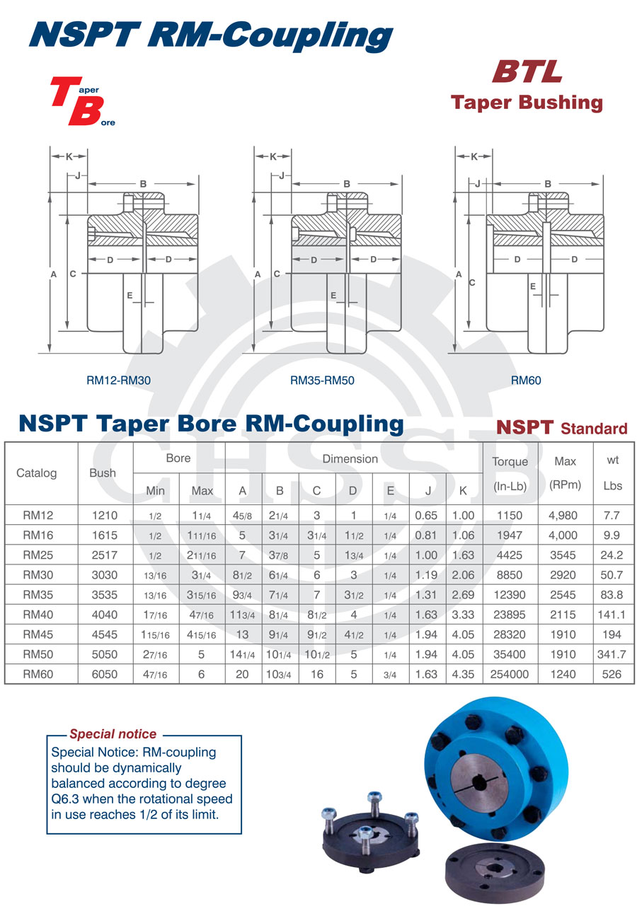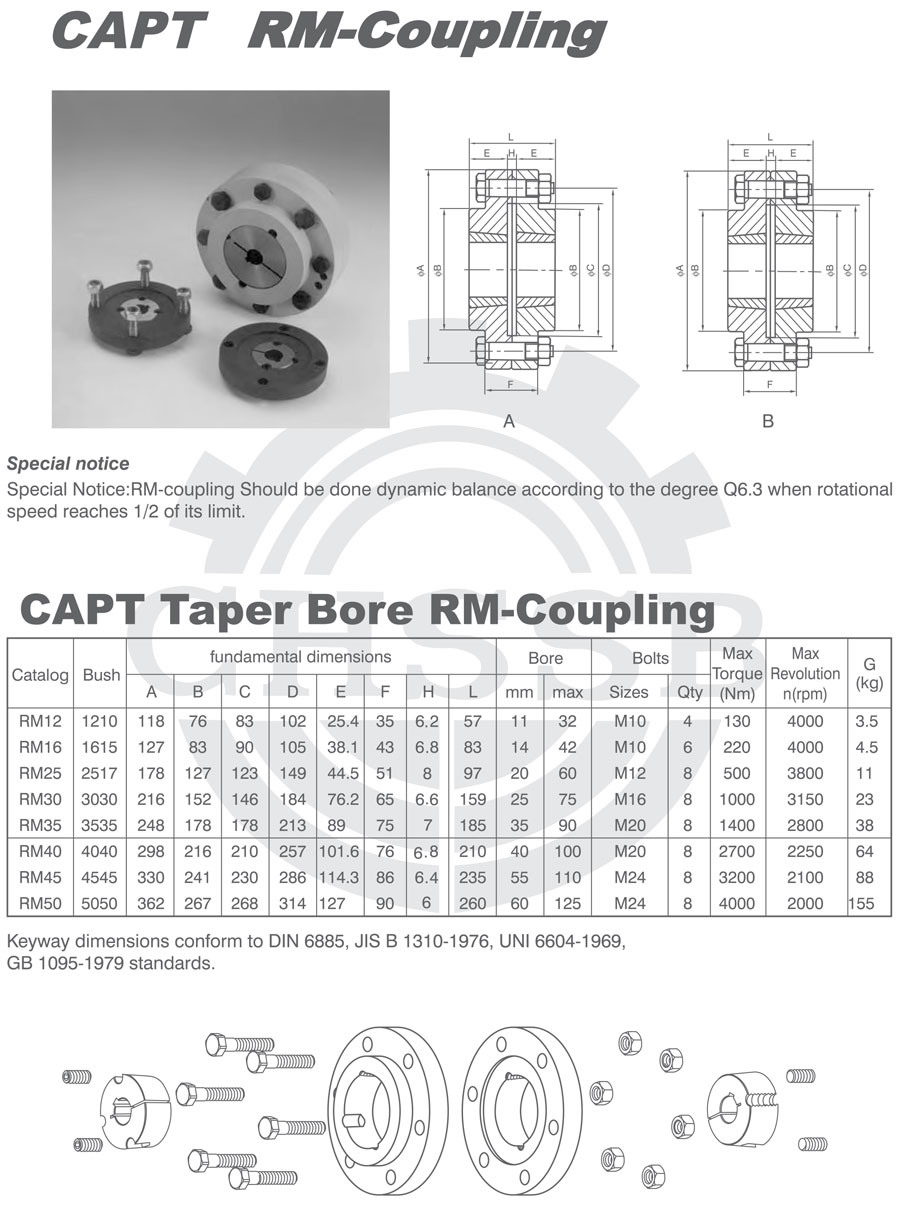 Special Notice:RM-coupling Should be done dynamic balance according to the degree Q6.3 when rotational