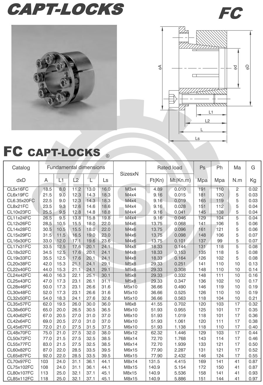 不高等特點(diǎn)。FC型脹套是FA2型脹套的輕型系列,其內(nèi)孔、外圓差值小,適合與結(jié)構(gòu)尺寸緊湊部位的聯(lián)結(jié)。
