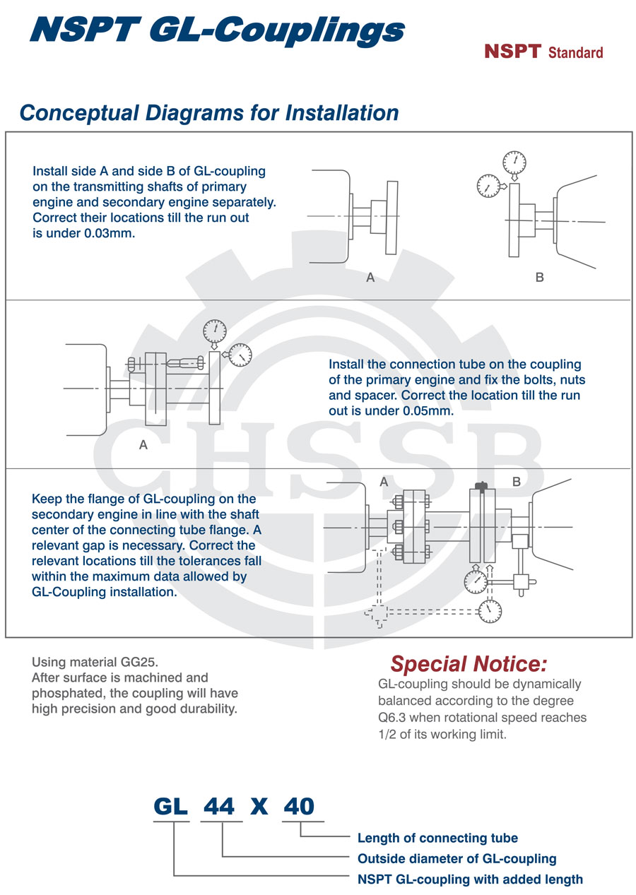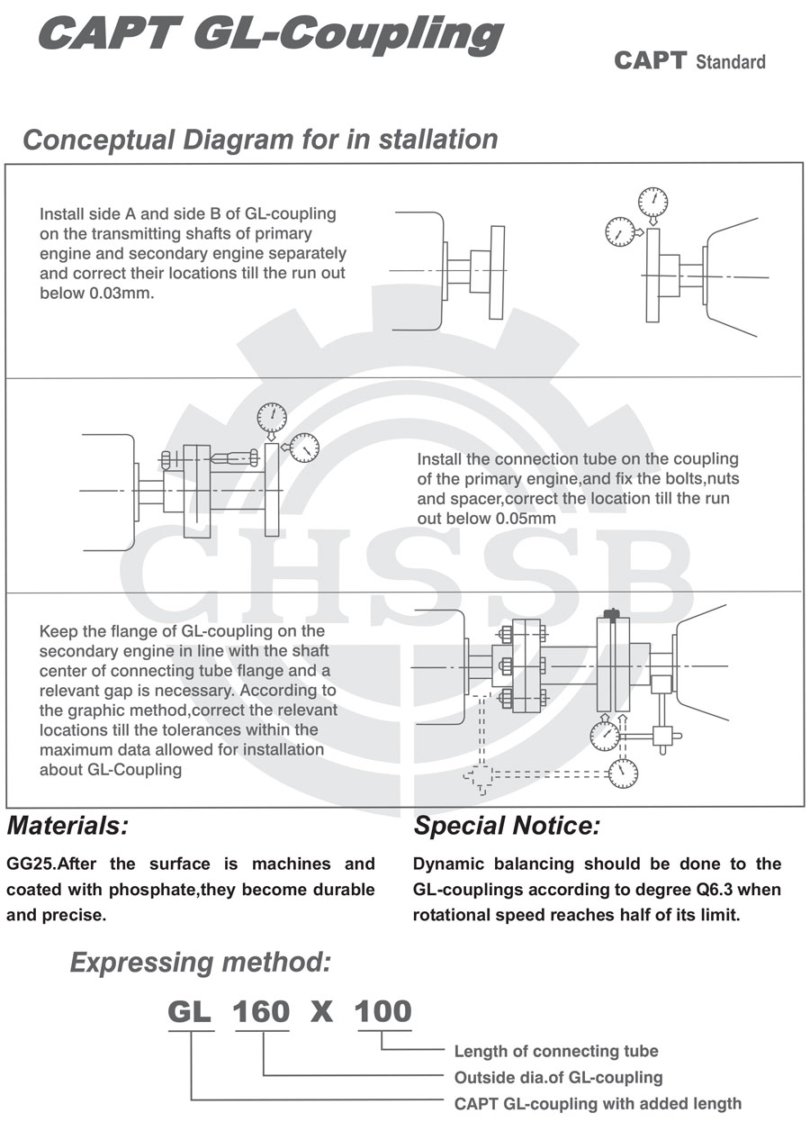 產品范圍: 美標/歐標:(GL44-GL124) 英制尺寸產品(適用于美標市場) 公制尺寸產品(適用于歐標市場) GL型聯軸器